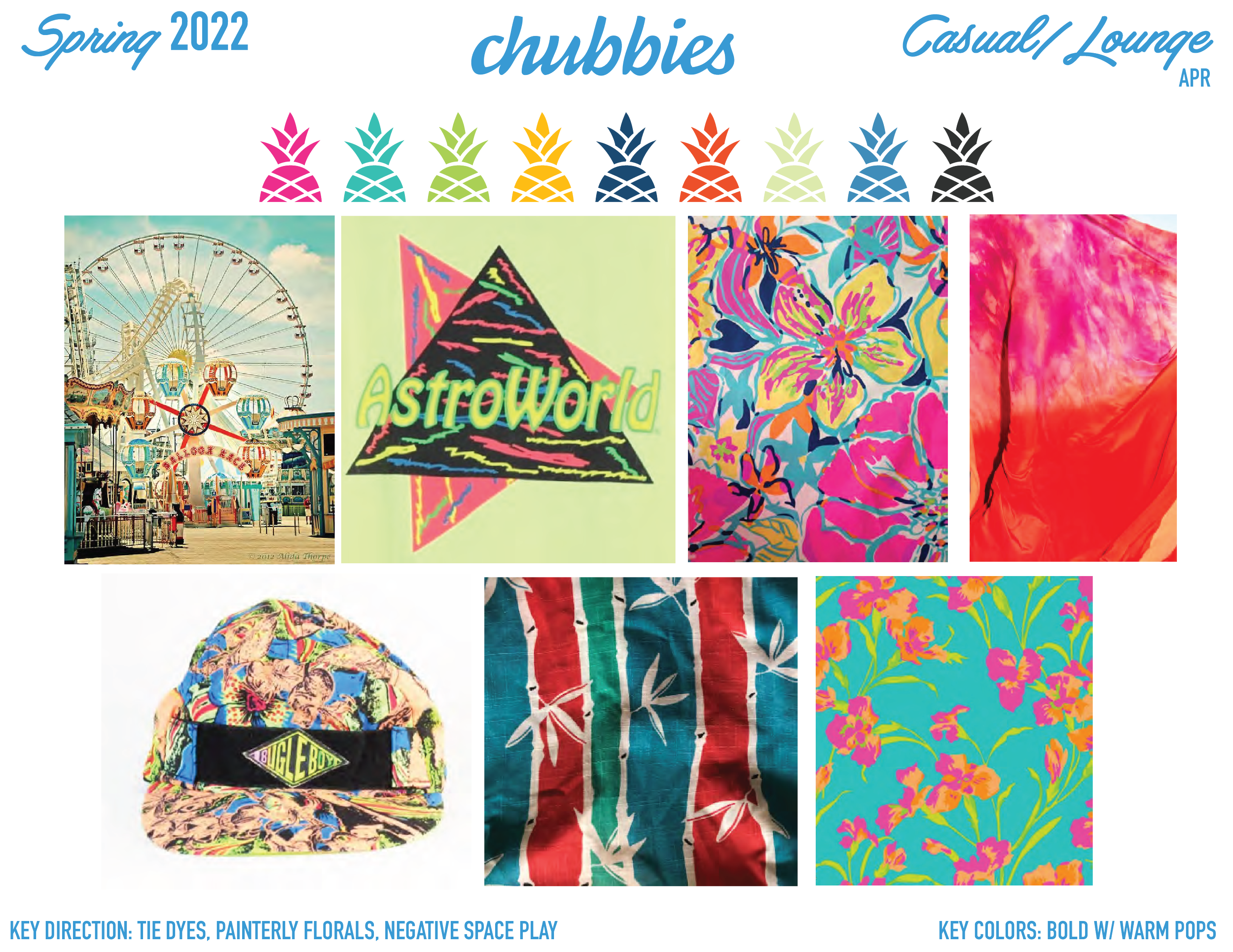 A sample of my most current art direction from Chubbies, Athleta Girls, & GAP Factory. These are initial concept boards as well as some final product to see how it came to life.